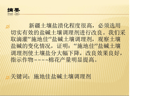 公司總農(nóng)藝師劉軍先生2013年11月29日在農(nóng)業(yè)部土壤調(diào)理產(chǎn)業(yè)研討會(huì)上的演講摘要 2013-12-18 華宏生物 公司總農(nóng)藝師劉軍先生 2013年11月29日在農(nóng)業(yè)部土壤調(diào)理產(chǎn)業(yè)研討會(huì)上的演講摘要