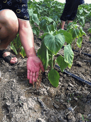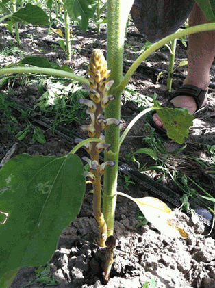 圖1: 食葵列當(dāng)寄生在向日葵植株上 圖2 :仔細(xì)觀察產(chǎn)品對(duì)列當(dāng)?shù)姆乐?/span>效果