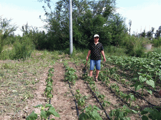 圖7:仔細(xì)觀察列當(dāng)危害 圖8:劉總在對(duì)照組地里思考著