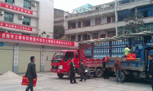 2012年,“施地佳”酸化土壤改良劑在湖北孝南區(qū)施恩土肥站的培訓現(xiàn)場和配送現(xiàn)場(圖)