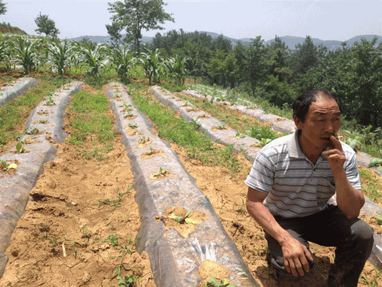 圖5:煙農(nóng)看見自己地里煙苗長得不好而發(fā)愁