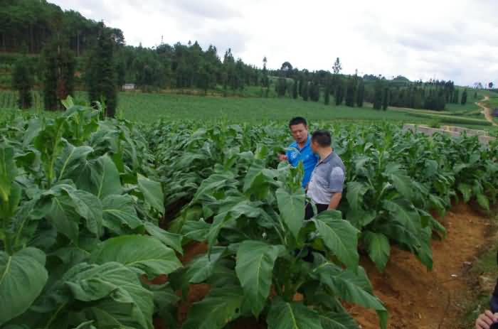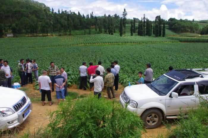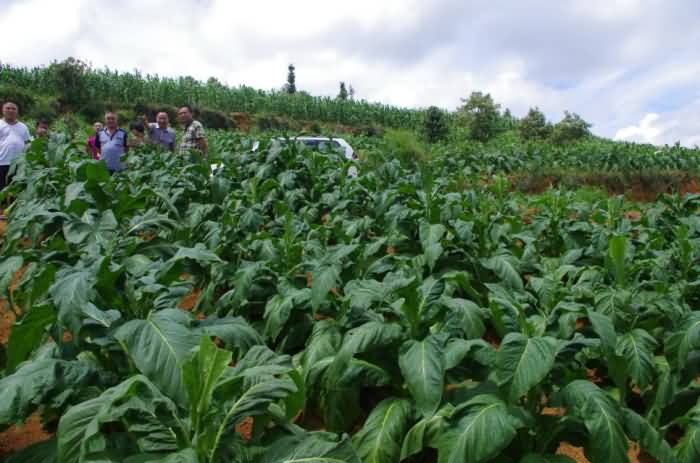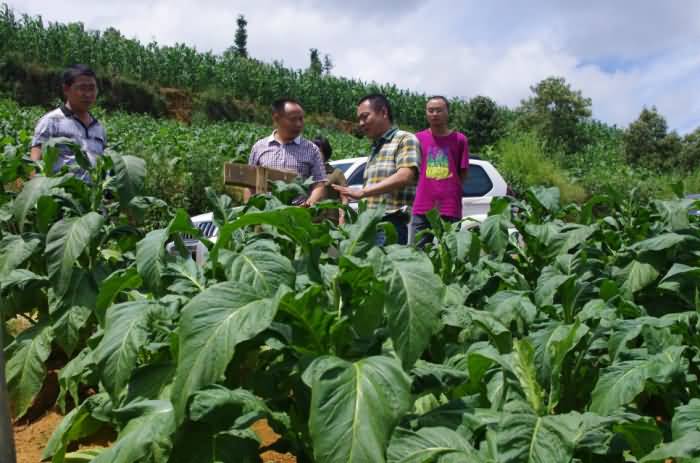 為了解自己的產(chǎn)品對酸化土壤的改良效果和產(chǎn)品質量因素,成都華宏生態(tài)農(nóng)業(yè)科技有限公司總經(jīng)理李智強,先于2014年4月親臨云南省麻栗坡縣(中越邊境縣)的試驗示范地,在當?shù)赝练屎蜔熆撇块T的主持下,召開使用示范現(xiàn)場會,在他們的引領下,實地指導用戶使用“施地佳”土壤調理劑。因效果明顯,在當?shù)責熆撇块T的建議和邀請下,李總又于7月19日,驅車趕到云南麻栗坡縣參加當?shù)責熆撇块T組織的效果現(xiàn)場會,并與煙農(nóng)們進行了廣泛的交流。李總看見自己開發(fā)的產(chǎn)品讓煙苗長得枝粗葉大,再大的勞苦也被拋在了腦后。