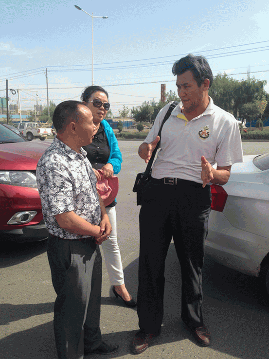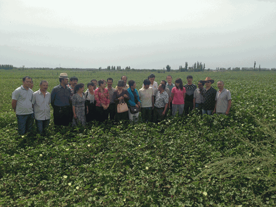 圖為:維族教授艾買爾江在向李總介紹項(xiàng)目實(shí)施情況,并說(shuō)你們的”施地佳“土壤調(diào)理劑應(yīng)用效果很好