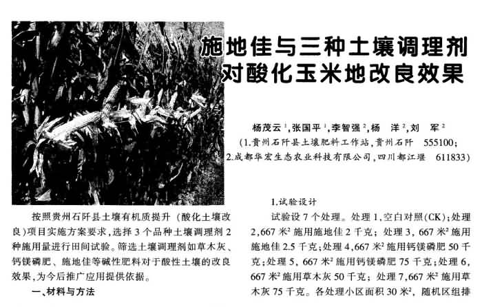 《農(nóng)村科技》2013年第2期 “施地佳”與三種土壤調(diào)理劑對酸化玉米地改良效果