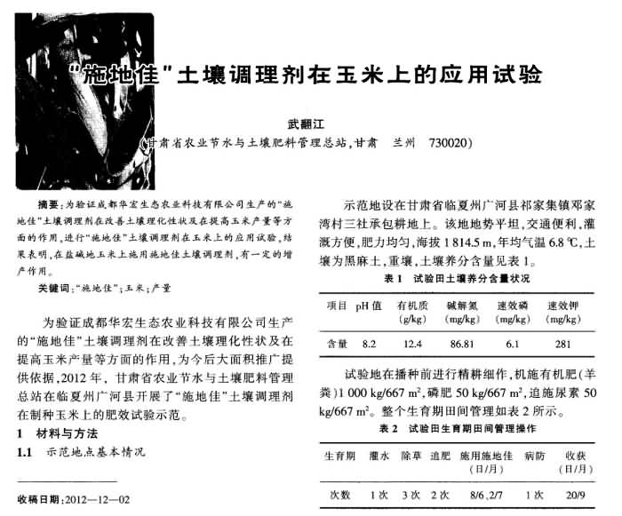 《新疆農(nóng)墾科技》2013年第3期 “施地佳”土壤調(diào)理劑在玉米上的應用試驗