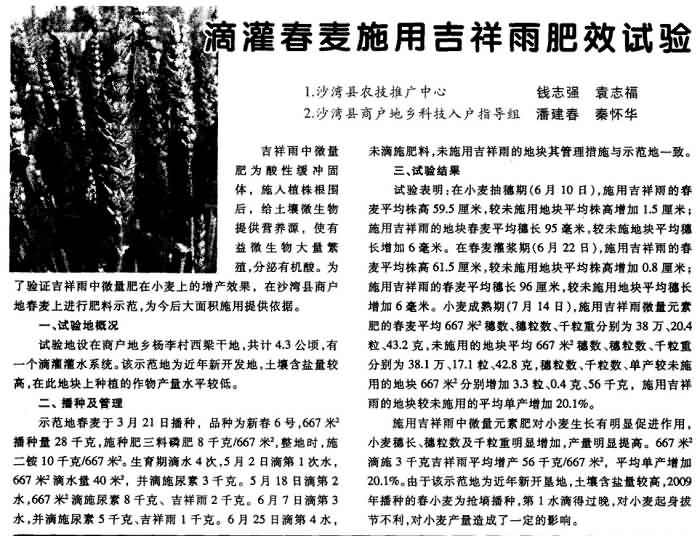 《農村科技》2010年第1期 滴灌春麥施用“吉祥雨”肥效試驗