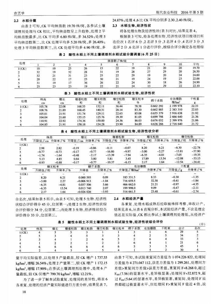 《現(xiàn)代農(nóng)業(yè)科技》2016年 第5期不同土壤調(diào)理劑對水稻在酸性土壤上生長的影響