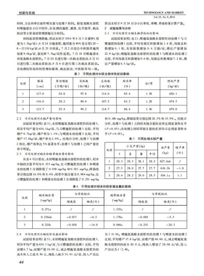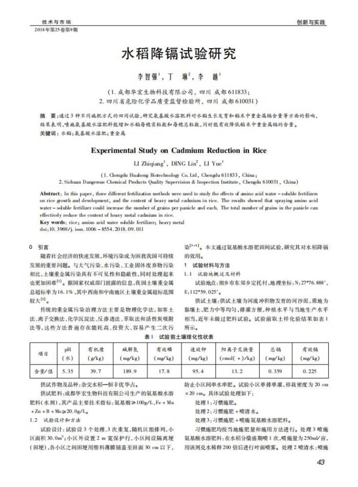 《技術(shù)與市場》2018年 第9期 水稻降鎘試驗研究