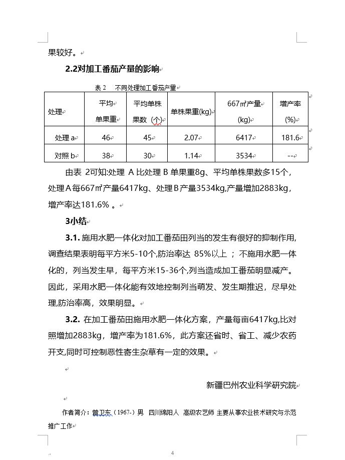 焉耆縣2017年生物、有機(jī)水肥一體化防治加工番茄列當(dāng)試驗(yàn)總結(jié)