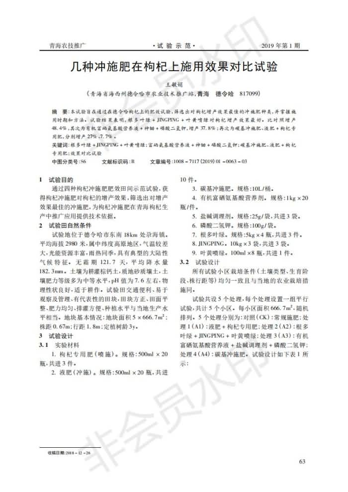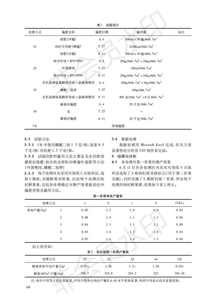 幾種沖施肥在枸杞上施用效果對比試驗