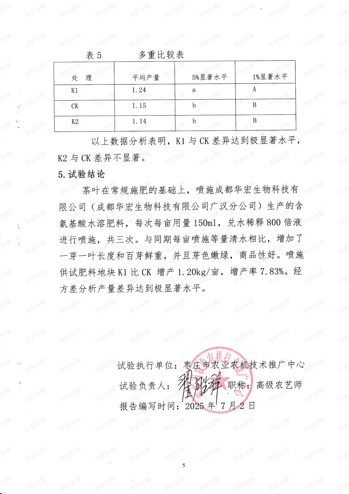 成都華宏生物科技有限公司生產(chǎn)的含氨基酸水溶肥料在茶葉上的肥效試驗(yàn)報(bào)告