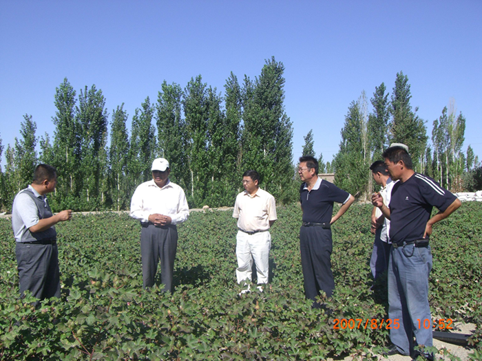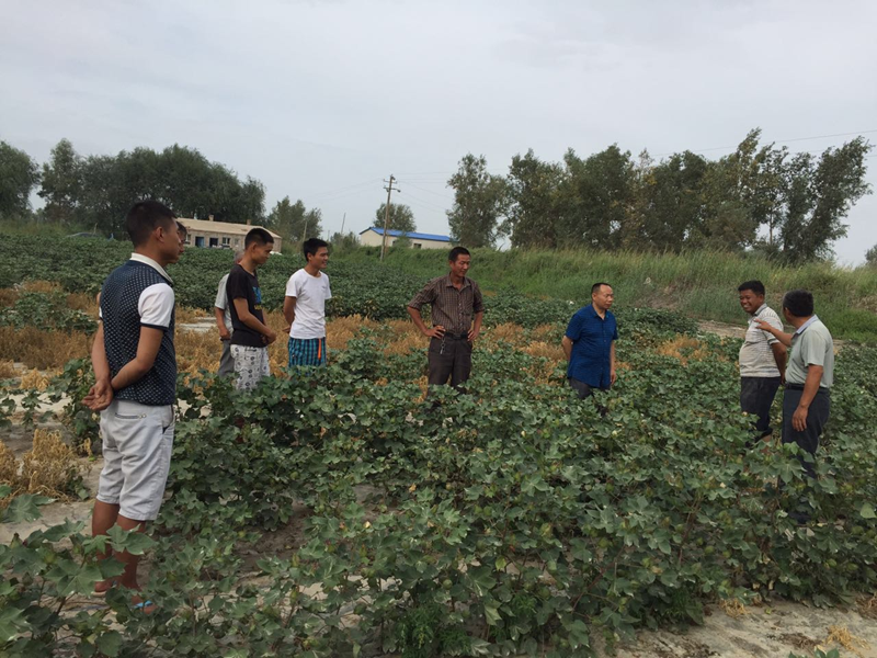 2020年6月17日新疆農(nóng)墾科學(xué)院生物研究所參觀我公司130團(tuán)光明合作社10000畝地產(chǎn)田改良示范田