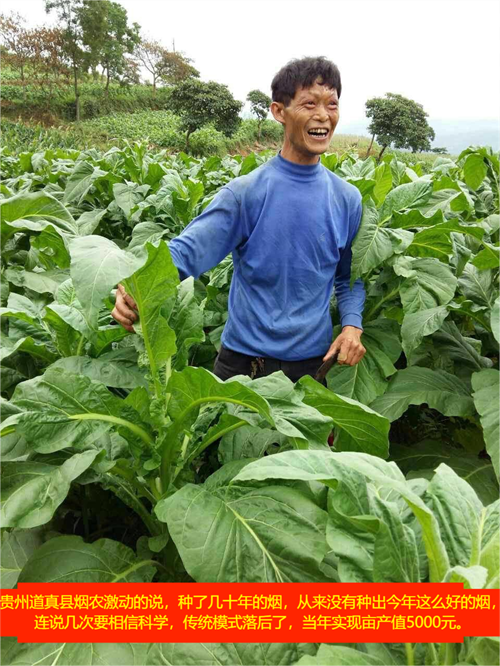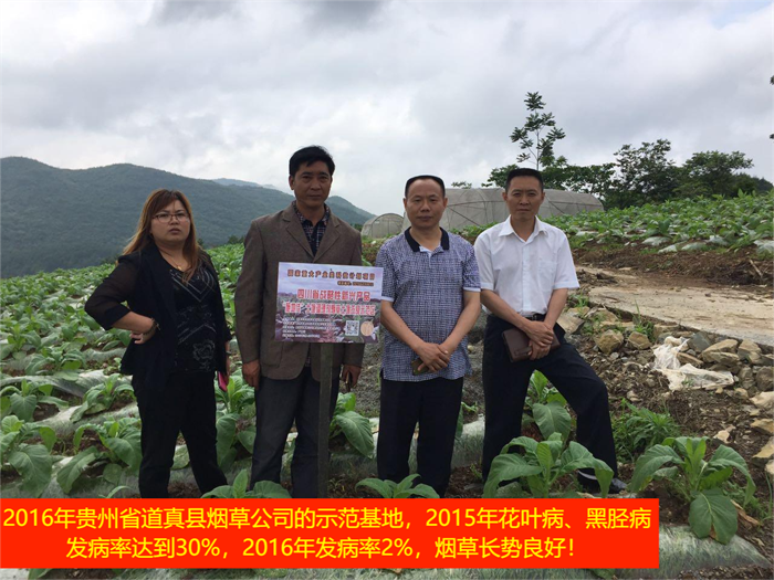 2016年貴州省道真縣煙草公司的示范基地,2015年花葉病、黑脛病發(fā)病率達(dá)到30%,2016年發(fā)病率2%煙草長(zhǎng)勢(shì)良好