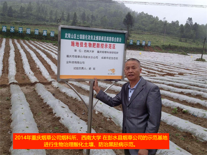 2014年重慶煙草公司煙科所、西南大學(xué)在彭水縣煙草公司的示范基地進(jìn)行生物治理酸化土壤、防治黑脛病示范