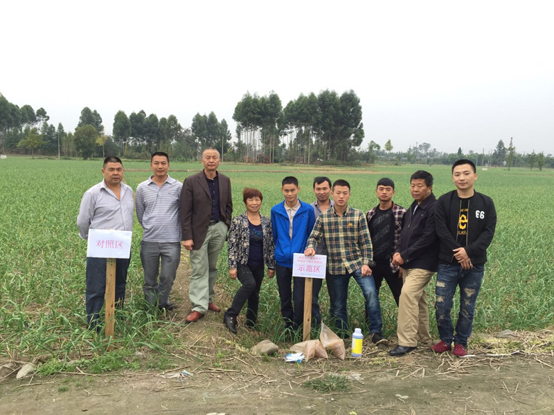 2016-2017年參與四川省農(nóng)業(yè)科學(xué)院 篩選污染治理方案,我公司參與什邡、彭州、綿竹等地的實(shí)驗(yàn)示范驗(yàn)證,圖為在大蒜種植基地的示范田。我們的方案:常規(guī)種植施肥+酸化土壤修復(fù)劑改良+葉面阻控綜合方案